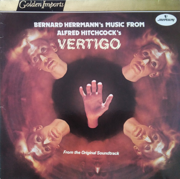 The cover art draws inspiration from the film without using any images from it directly. A hand grasping from the darkness of an iris — a woman’s face transposed four times in a circle, the whole thing suggesting an eye, or a spiral, or both. Weird and alluring in a specifically 1970s way, the kind of image that would pull someone in at a record store whether they’d seen the film or not. By 1977 Vertigo was nearly twenty years old and had not yet been restored or widely reassessed — it was still in the vault. A large sticker on the front cover announces that it was imported from Europe, pressed in the Netherlands. I wish more European imports in American record stores were that straightforward about their origins. Many stores I visit today are quietly moving European pressings to American collectors without much acknowledgment of what they actually are.