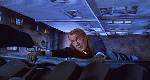 The film opens on a grey metallic bar across the screen. Scottie’s vertigo is introduced to the audience not through dialogue or explanation but through music — a rush of sensation that tells you exactly what the film’s title means before a word is spoken.
